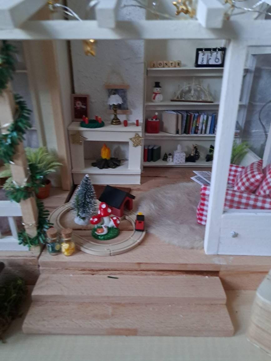 Diese Miniatur-Holzeisenbahn ist das perfekte Spielzeug für kleine Wichtel – ob im Kinderzimmer hinter der Wichteltür oder als Deko im Puppenhaus. Mit liebevoll gestalteter Lok, einem kleinen Waggon, vier passenden Schienenstücken und einem Mini-Häuschen entsteht im Handumdrehen eine bunte Spielsituation im Mini-Format.